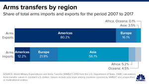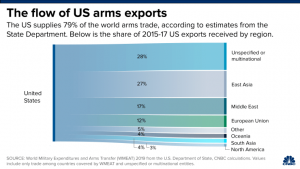 “Both the growth in the world arms trade and the high proportion of world arms imports supplied by the U.S. appear to have been due largely to reliance on the United States as a source of arms by other rich, democratically-governed countries,” the authors of the report wrote.